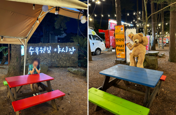 야시장 가운데 중심으로 테이블이 많아서,