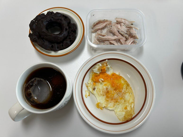 누룽지, 닭가슴살, 렌디스도넛 초코도넛,