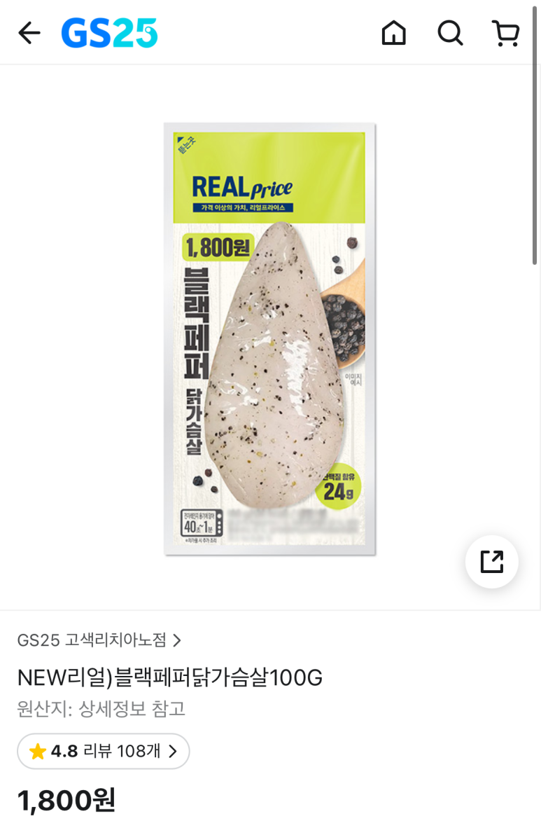 GS편의점에서 사먹은 블랙페퍼 닭가슴살