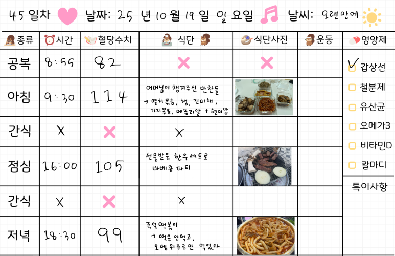 ✔️ 저녁 식후 1시간 혈당 '99' 체크인⭕
