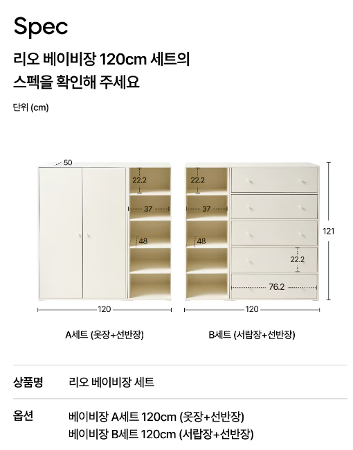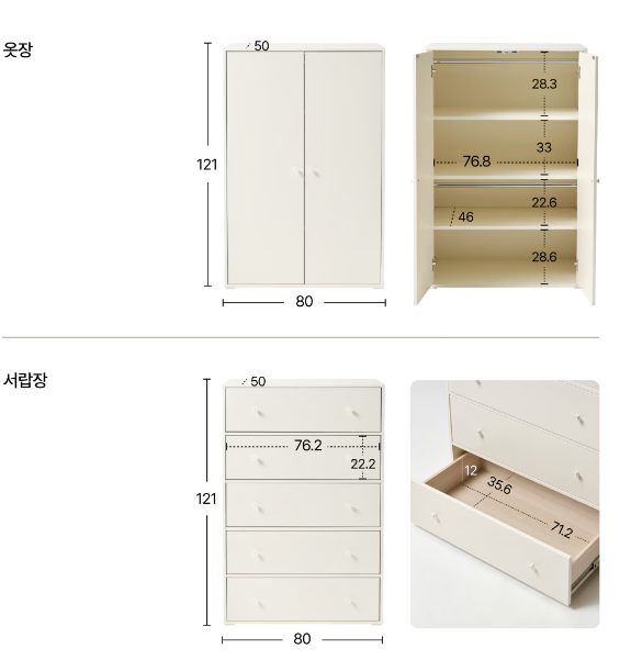 베이비장 C세트 160cm 옷장 + 서랍