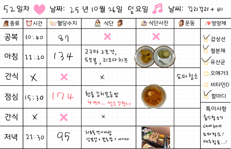 ✔️ 저녁 식후 1시간 혈당 '95' 체크인⭕