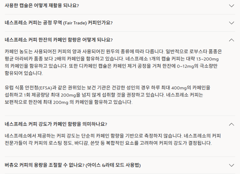 네스프레소 공식 홈페이지에서는
