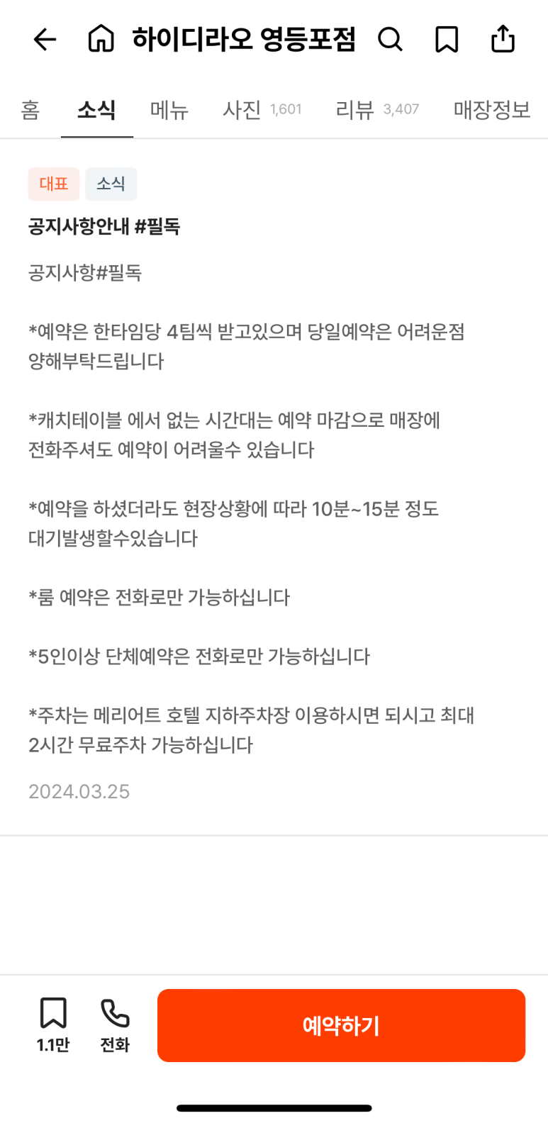매장에 대기팀이 2팀 이상 있을 때부터 가능하다!
