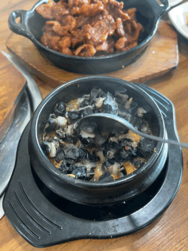쌈장에 우렁이 잔뜩 들어있었다.