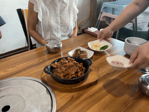 제육은 바로 요리해서 푸짐하고 뜨겁게 나왔고,