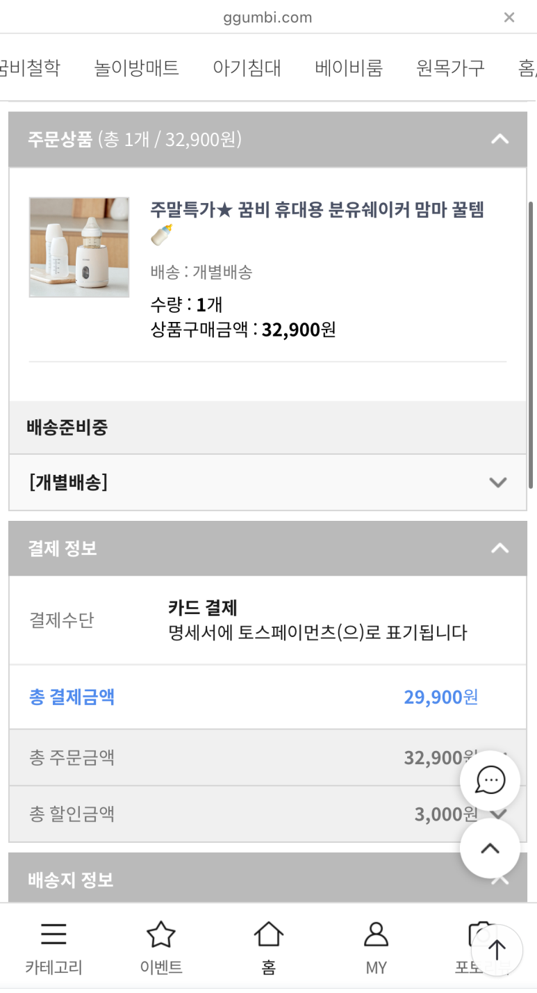 배송비는 따로 없었다👍