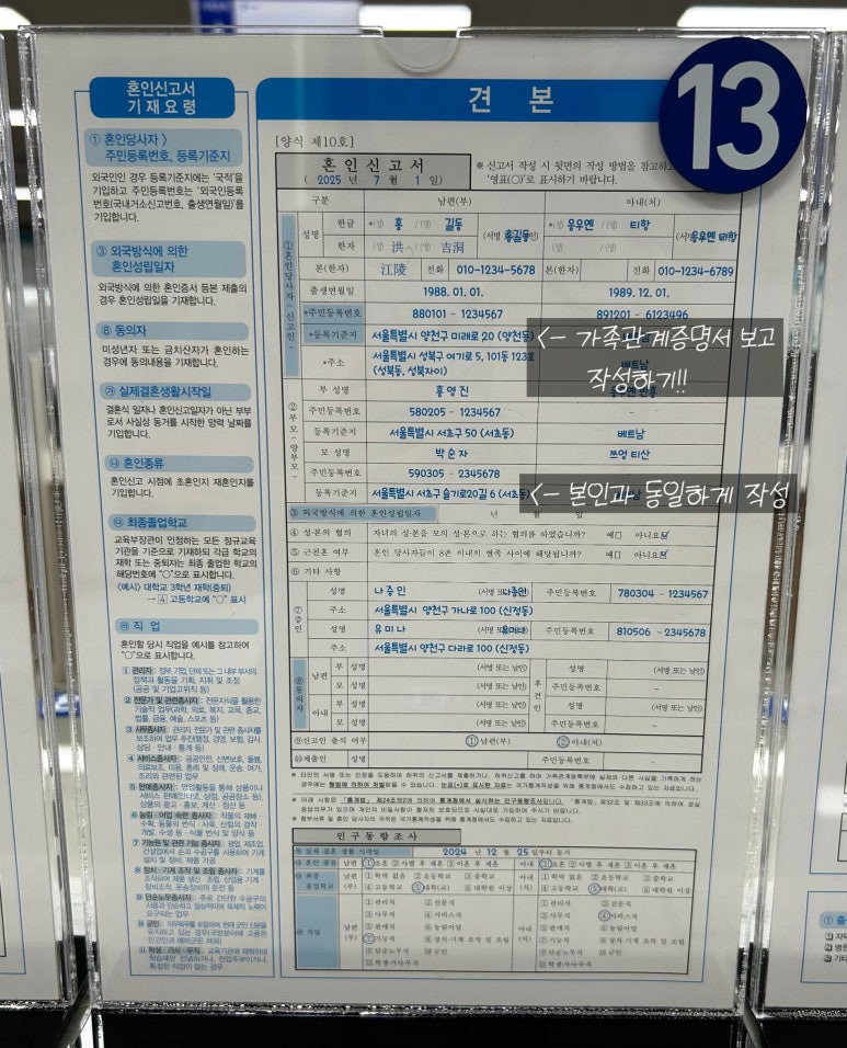미리 시부모님 도장 받아서 구청갈 때 들고갔다!