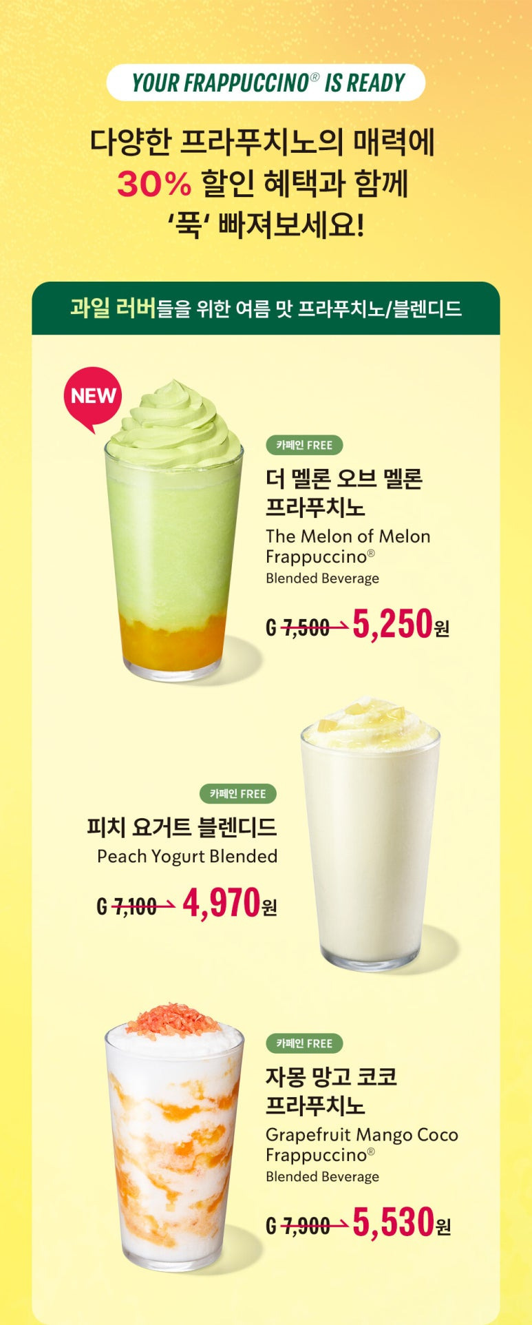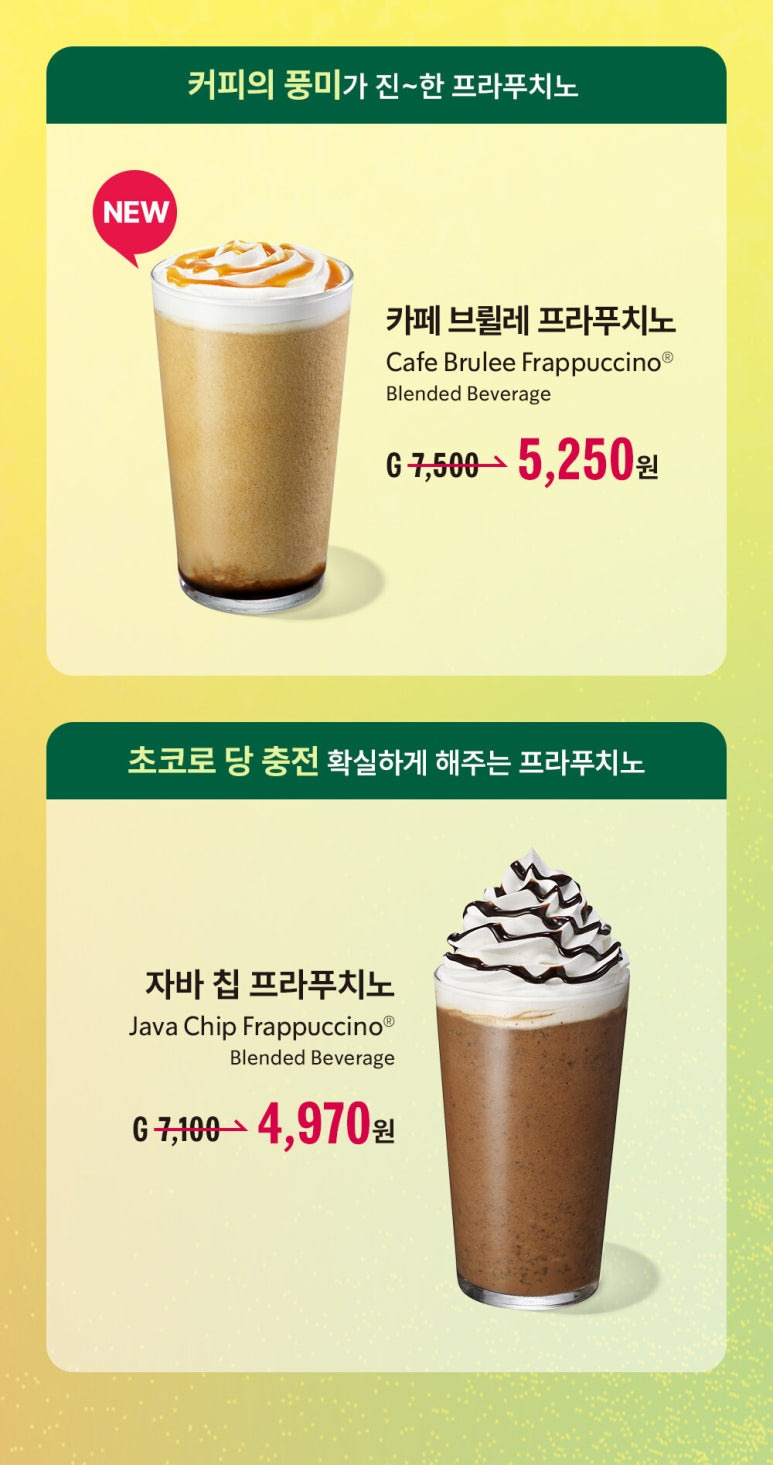 행사 음료: 신메뉴 포함 프라푸치노 5종