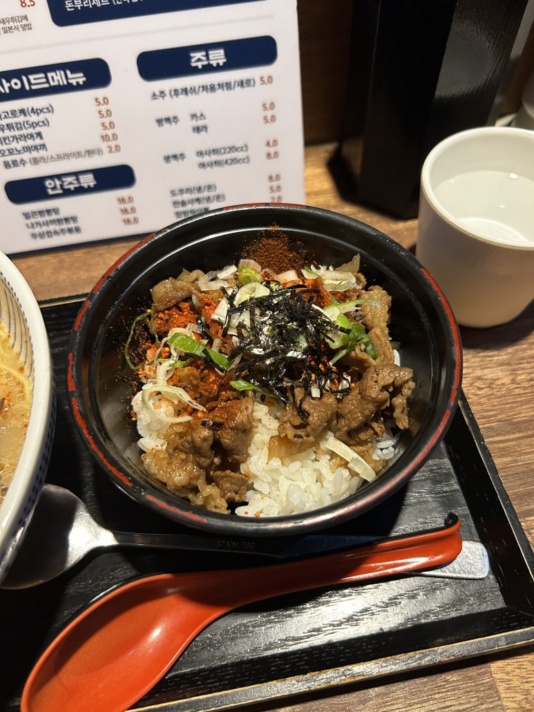 미가돈코츠라멘 (매운맛) + 미니규동