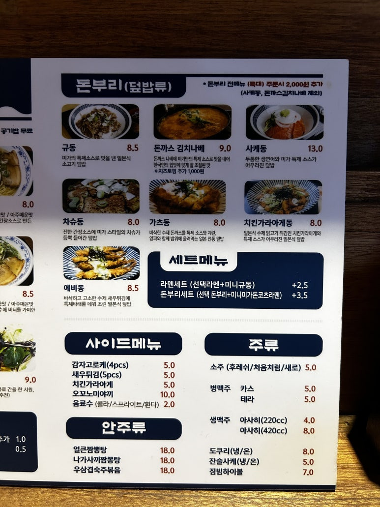 '라멘'과 '돈부리' 그리고 '안주메뉴'로 나뉜다