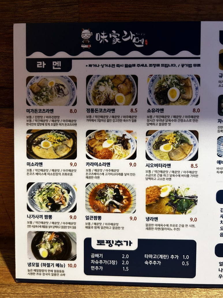 라멘 메뉴 종류도 정말 많고,