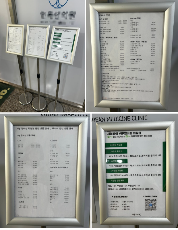 미용실 밖에 가격표도 미리 준비되어있어서,