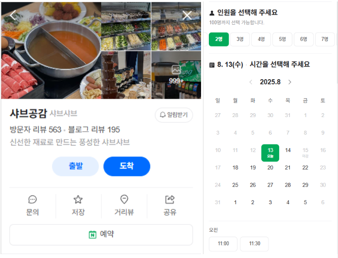 원하는 날짜 & 시간 & 인원수를 선택하면