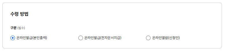 '온라인발급(본인출력)' 으로 했다.