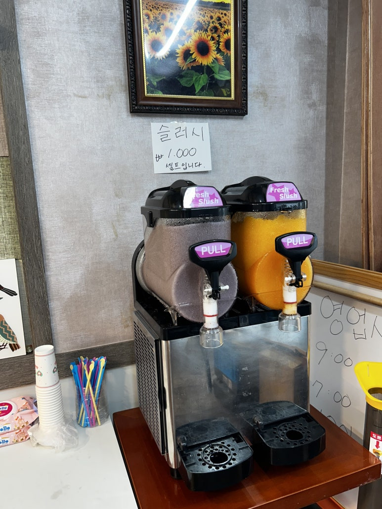 슬러시 외에 물이나 커피, 각종 음료들도 있다 !