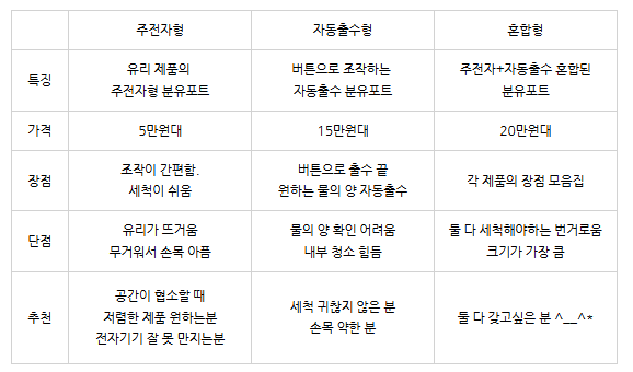 👶사탕이 육아템 공부하기② 분유포트 | 주전자형, 자동출수형, 혼합형 비교