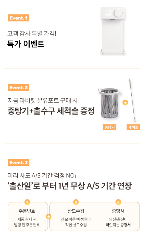 중탕기 + 출수구 세척솔 증정되고,