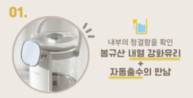 분유포트 봉규산내열유리+자동출수 결합, 클로라민과 염소 동시제거, 출수량 미세조절 수동레버, 출수량 조절, 편리한 온도유지
