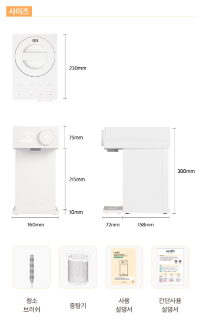 분유포트 봉규산내열유리+자동출수 결합, 클로라민과 염소 동시제거, 출수량 미세조절 수동레버, 출수량 조절, 편리한 온도유지