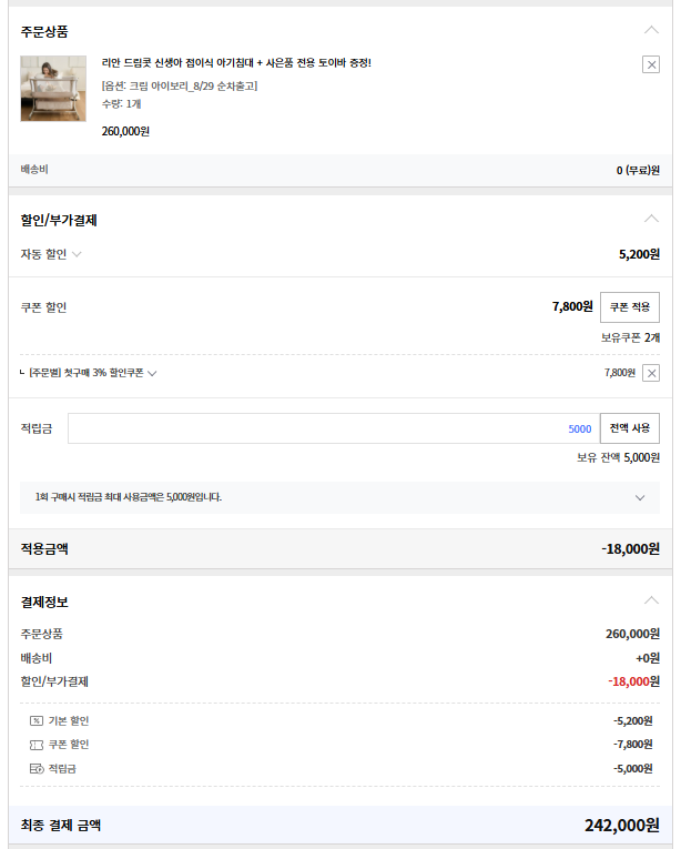 '리안드림콧 핫딜' 때 구매하는 걸 추천