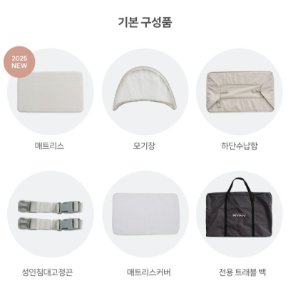 침대 , 모기장, 수납함, 고정끈, 전용 트래블백