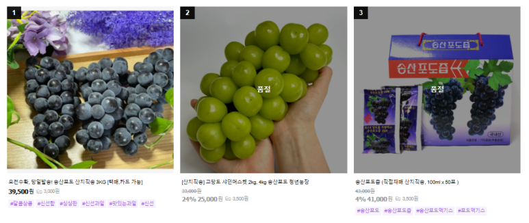 청년농장 송산포도 가격은