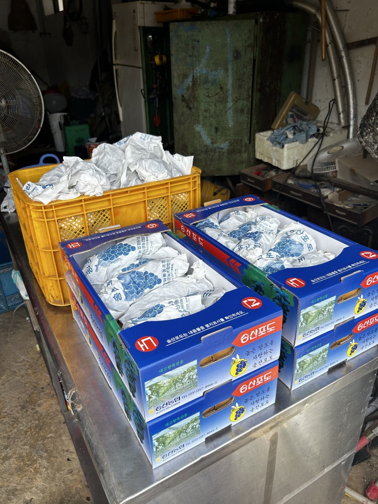 안에 들어가면 포도가 박스에 포장되어있다.