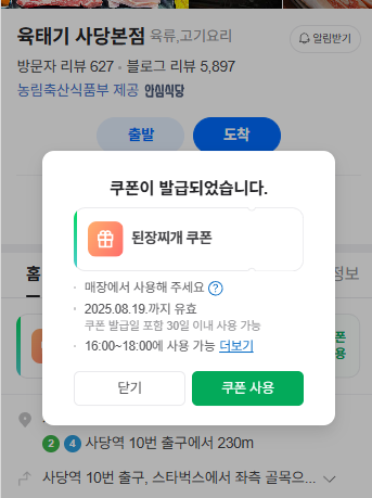 지금 네이버지도 들어가면 쿠폰 받을 수 있음.