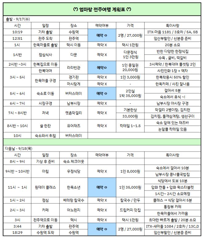💚엄마랑 떠나는 1박 2일 전주여행 계획표💚