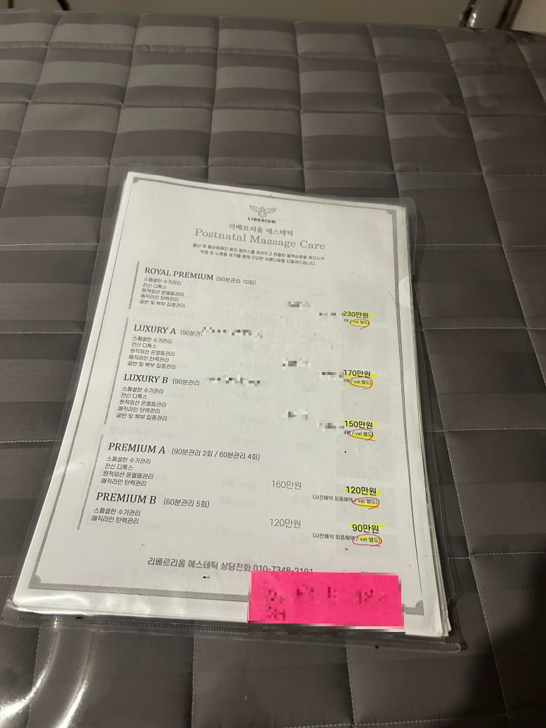 수원 리베르리움 계약 혜택 '산전마사지' 후기 33주에 다녀온 리베르리움 산전마사지포스팅 하는거 까먹고있다가 작성하기^.^​내가 계약한 리베르리움 조리원은13박 14일 계약시 산전 마사지 1회 50분 & 산후 마사지 2회 각 40분 제공된다25년 4월 계약 기준 혜택​4월에 계약하고 시간이 흘러흘러~~9월에 조리원에서 연락이 왔다 ​나는 병원 진료 가는 날에 한번에 받고싶어서미리 일정 확인하고 33주로 예약했다 ! ​예약날짜 하루전날 한번 더 확인 연락왔고,진료보고 6층으로 올라가서전화드리니 문 열어주셨다 : ) 마사지실은 여러개 있었고,한번에 2명씩 받을 수 있는 룸이었다.​준비해주신 베드에 팬티만 입고 누우면마사지 시작한다 !( 목걸이는 빼야하니 미리 빼고가세용 ) 베드가 엄청 따뜻했고,바디필로우에..