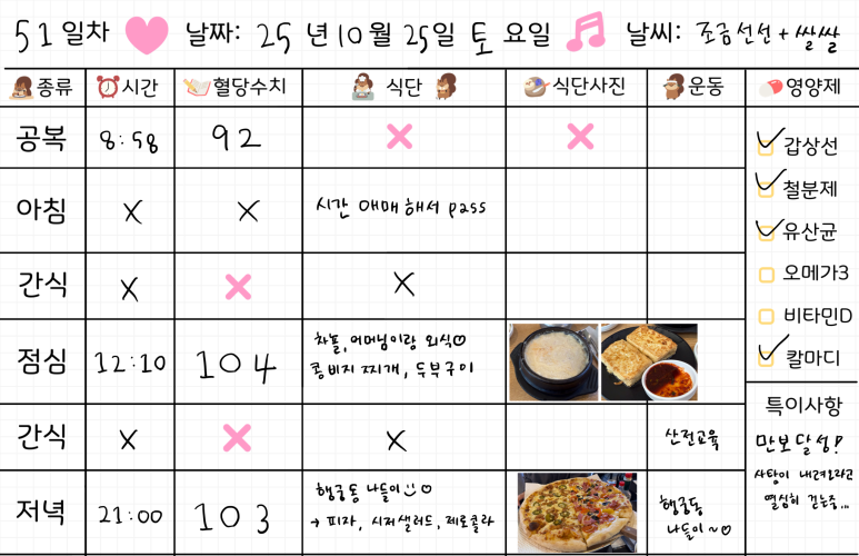 임신 35주차 임당식단 51일차 & 혈당체크 비지찌개, 두부구이, 피자, 시저샐러드 25년 10월 25일 토요일51일차 시작🧡✔️ 공복 혈당 '92' 체크인⭕​오늘도 안정권 ! 🍽️ 아침식사 시간 애매해서 못먹고 외출 ! 🍽️ 점심식사 콩비지찌개두부구이​✔️ 점심 식후 1시간 혈당 '104' 체크인⭕ 어머님이 화성에 유명한 두부 맛집이라고 해서차뇨리랑 셋이 다녀왔다11시 오픈런 했는데도 사람 짱 많았음 !!콩비지는 내스타일 아니었고,두부구이는 맛있었다. 🍽️ 저녁식사행궁동 나들이💗피자시저샐러드​✔️ 저녁 식후 1시간 혈당 '104' 체크인⭕ 산후도우미 업체에서 진행하는산모교실 수업 듣고,차뇨리랑 행궁동 나들이💗차뇨리가 좋아하는 피자 먹으러 갔다샐러드 먼저 먹고 열심히 걸어다녀서 그..