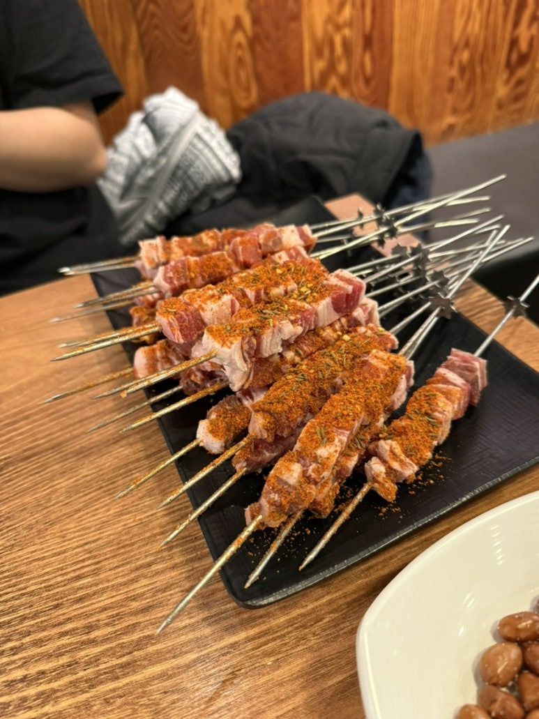 수원 고색역 양꼬치집 ‘심양양꼬치‘ 양꼬치, 온면, 건두부무침내돈내산 먹방 후기 ​며칠 전부터 양꼬치가 먹고 싶어서생각만 하다가차뇨리랑 먹으러 다녀왔다😊​집 근처에는 없고고색역이나 호매실 중에 어디로 갈까하다가자주 다녔던 ‘심양양꼬치’로 선택!! 심양양꼬치 고색점은고색역 4번 출구에서 나와서킹마트 쪽으로 쭉 걸어오면 있다​내부는 주로 4인석이고단체로 앉을 수 있는 좌식 자리도 있음 ​가장 좋은 건내부에 화장실이 있다는거~~양꼬치에는 맥주가 필수기 때문에화장실 여부 중요하다..!​메뉴 구경해보세요~~~~😊 ​우리는 성인 2명이서 방문했고양꼬치 2인분온면건두부무침이렇개 주문했다😆​심양양꼬치 좋은 점기본 시즈닝과 매운가루가테이블마다 있어서마음껏 먹을 수 있음!!! ​기본반찬은양파장아찌랑 땅..