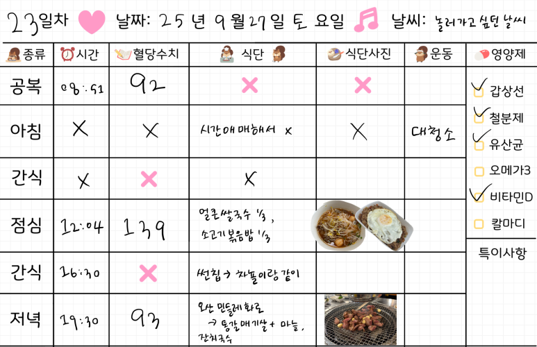 임신 33주차 임당식단 32일차 & 혈당체크 누룽지, 초코도넛, 모듬카츠 25년 10월 6일 월요일32일차 시작🧡✔️ 공복 혈당 '90' 체크인⭕그림에 60으로 잘못적었다 ㅎ.ㅎ 🍽️ 아침식사 저당 두유 1개요플레 + 견과류 ✔️ 아침 식후 1시간 혈당 '95' 체크인⭕추석 당일이라 아침일찍 시댁으로~~집에서 간단하게 챙겨갈 수 있는걸로가져가서 먹었다 ! 🍽️ 점심식사 새우찜갈비찜고사리나물동그랑땡전탕국현미밥 조금송편 1개✔️ 점심 식후 1시간 혈당 '110' 체크인⭕어머님이 차려주신 음식들잡채는 당면이라 안먹었다ㅠㅡㅠ생각보다 낮은 혈당에 안심~~! 💗간식💗어머님이 차려주신 과일 세트 🍽️ 저녁식사흑미밥 조금된장찌개닭가슴살 샐러드약과✔️ 저녁 식후 1시간 혈당 '144' ..
