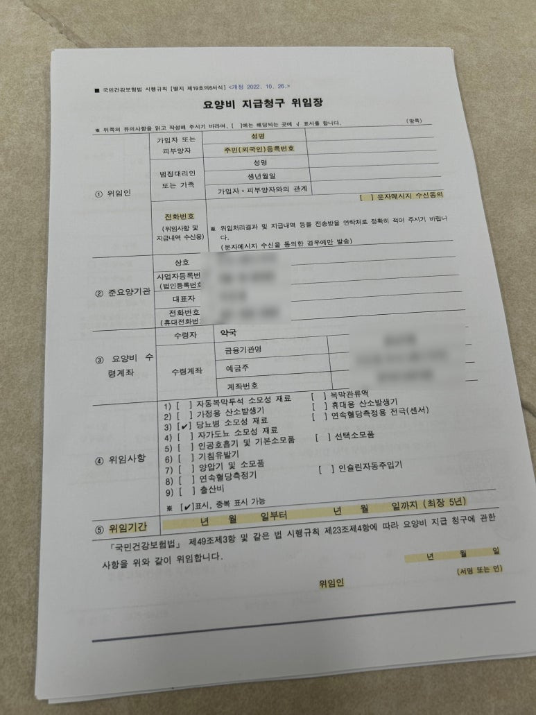'요양비 지급청구 위임장' 작성하면