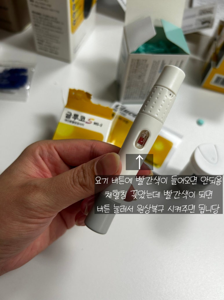 처음에 채혈침 꽂을 때 너무 꾹 누르면