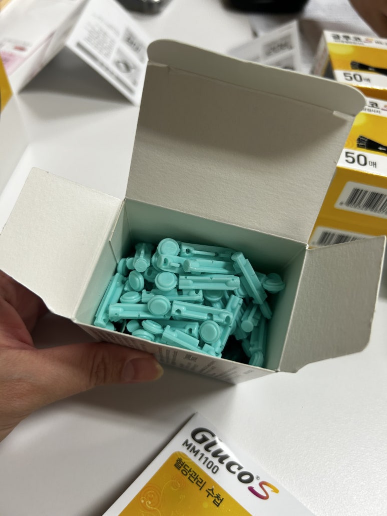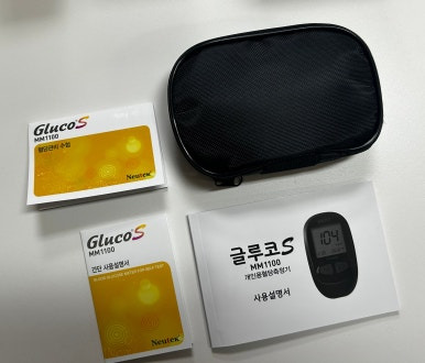 혈당측정기계, 건전지, 채혈기, 여분의 침
