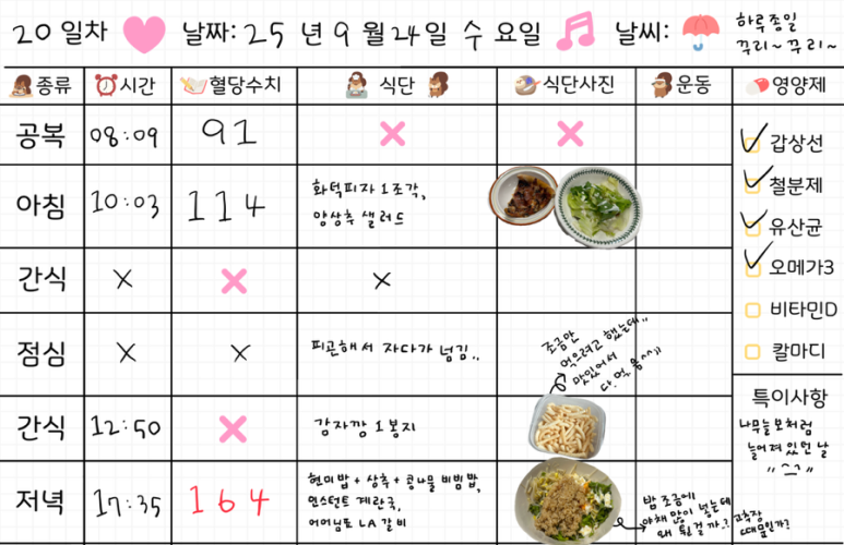 ✔️ 저녁 식후 1시간 혈당 '164' 체크아웃❌