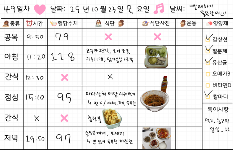 ✔️ 점심 식후 1시간 혈당 '95' 체크인⭕
