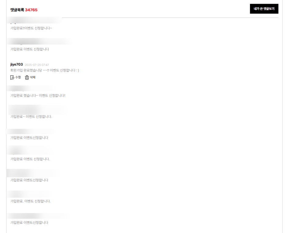 이벤트 페이지 맨 밑으로 내리면 댓글달 수 있다.