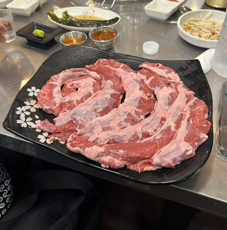 고기는 불판 끝에 올려두고 천천히 먹었다.