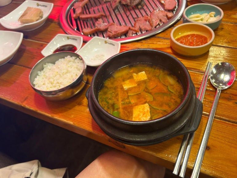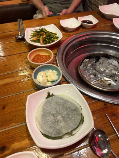 고기 굽고 있으니 바로 준비해주신 식사메뉴