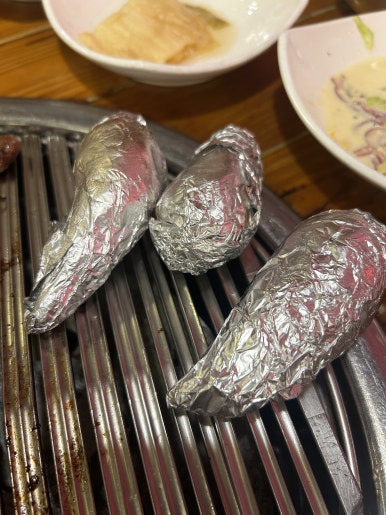반찬세팅 후 바로 숯과 고구마를 넣고,